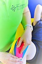 Techniken wird es auf die Haut aufgebracht. Das farbenfrohe Tape kann sowohl